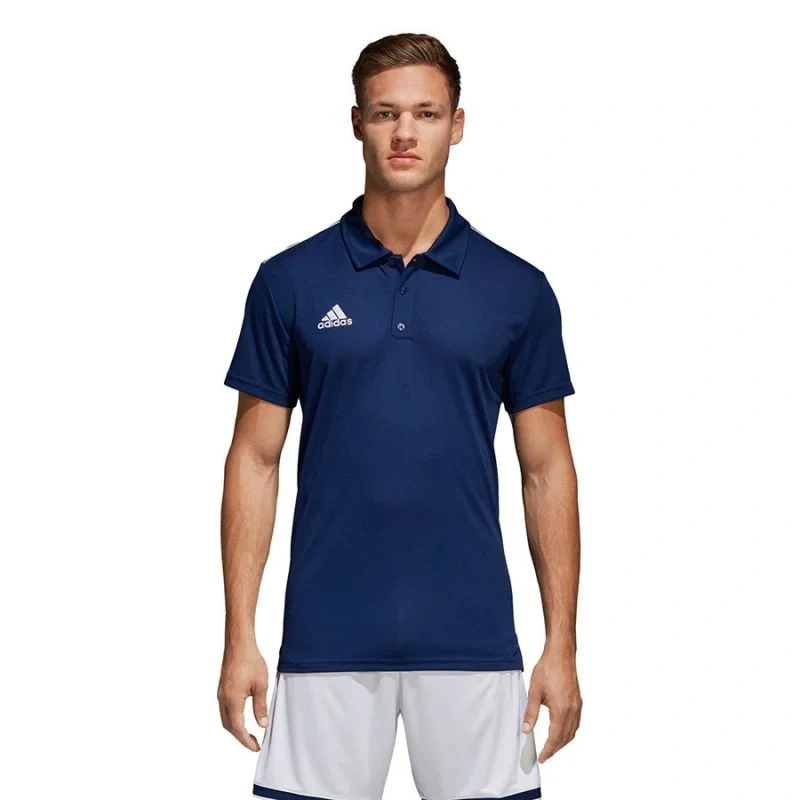 Męska koszulka adidas CORE18 POLO to koszulka z krótkim rękawkiem. Koszulka ta została zaprojektowana z myślą o osobach aktywnych fizycznie, w szczególności piłkarzach. Koszulka posiada kołnierz w stylu polo, z zapięciem na trzy guziki. Koszulka zbudowana została z tkaniny climalite®. Jest to tkanina w 100% syntetyczna, wchłania pot z powierzchni skóry i odprowadza go do jej zewnętrznej warstwy, aby szybciej wyparował. Utrzymuje ciało suche, dając uczucie komfortu. Zabezpiecza ciało przed przegrzaniem w wysokich temperaturach, umożliwiając ciału utrzymanie stałej temperatury, dla poprawy wyników sportowych. Obniża prawdopodobieństwo przeziębienia się po ćwiczeniu. Krój koszulki jest swobodny. Koszulka została wyposażona w dodatkowy, zapasowy guzik, który został przyszyty do metki. Na prawej piersi umieszczono kontrastowe logo adidas, w kolorze białym, natomiast po lewej stronie, u dołu koszulki umieszczono także biały napis climalite.