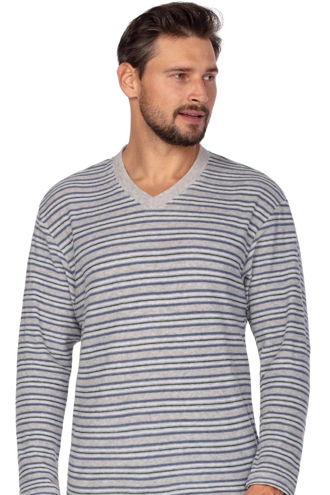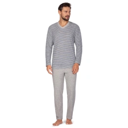 Pánské pyžamo 450 grey REGINA - z vysoce jakostní froté bavlny - pruhované tričko s dlouhými rukávy - pohodlné dlouhé šedé kalhoty
