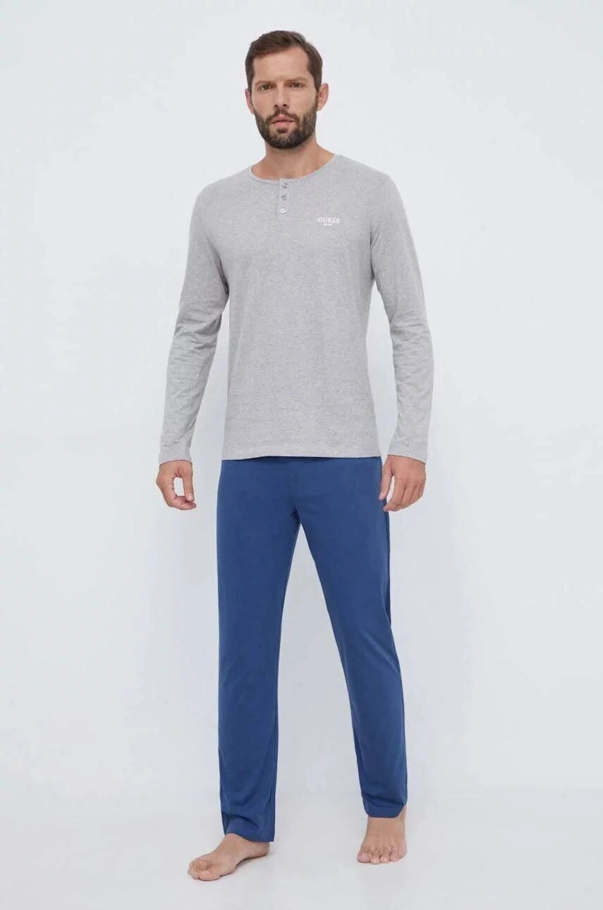 Pánské pyžamo od značky Guess - dlouhý rukáv - kulatý výstřih s knoflíčky - logo Guess  - dlouhé kalVíce