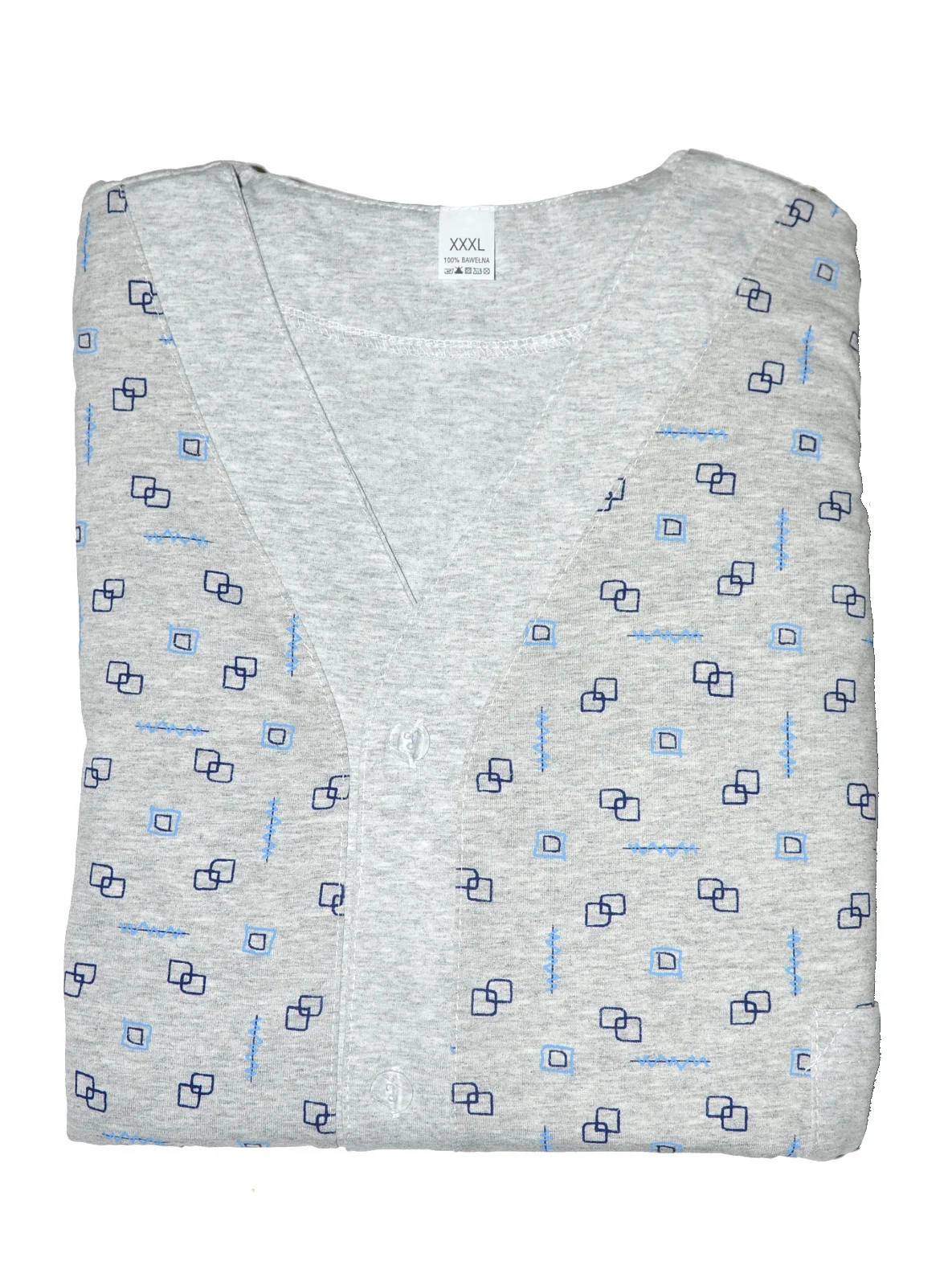 Blůza pyžama má dlouhé rukávy, pohodlné kapsy a zapíná se knoflíky. Dlouhé kalhoty jsou jednobarevné. Dostupné barvy, které jsou vybírány náhodně: grafitová, džínová.