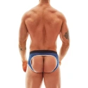 - přední díl z jemného materiálu zdobený bílými pruhy- zadní díl je otevřený