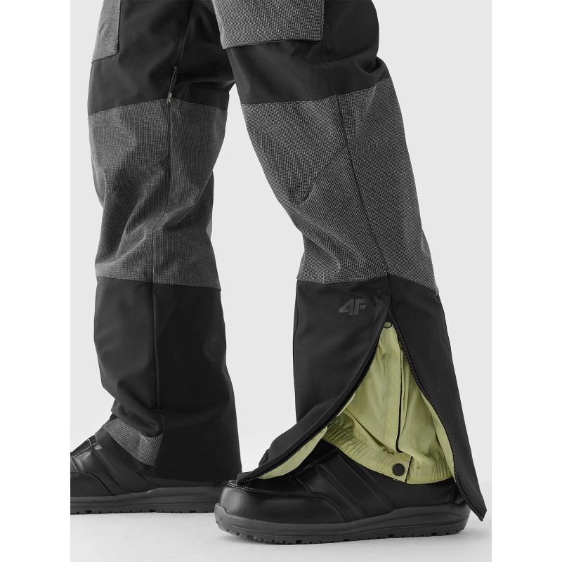 Pánské zimní snowboardové kalhoty mají 2 boční kapsy na zip. Náprsní kapsa se zipem a dodatečnou légou na patentky. Lyžařské a snowboardové kalhoty mají také ventilační systém na zip na vnitřní straně stehen. Pas s trojitými zipy, suchými zipy a patentkami. Kromě toho jsou na bocích suché zipy pro přesné přizpůsobení pasu. Reflexní prvky zlepšují viditelnost na svazích.