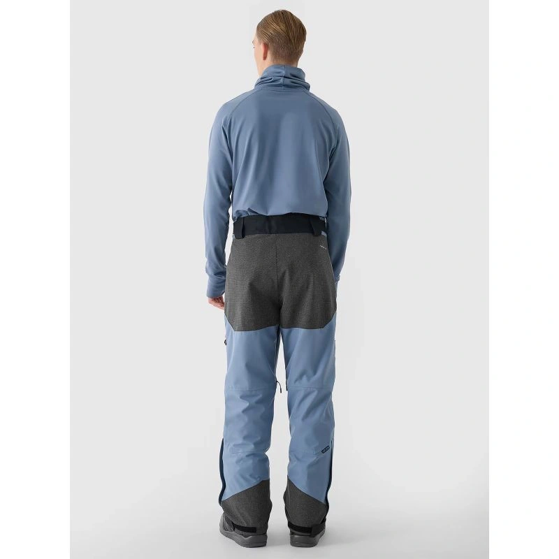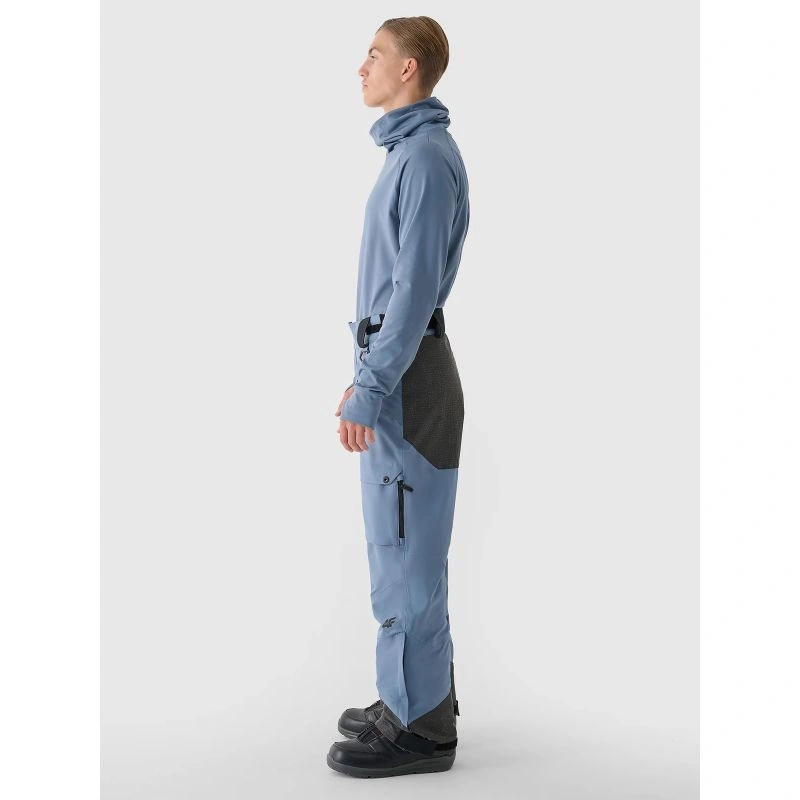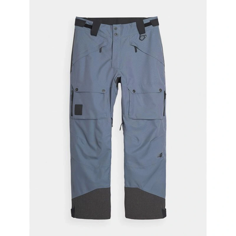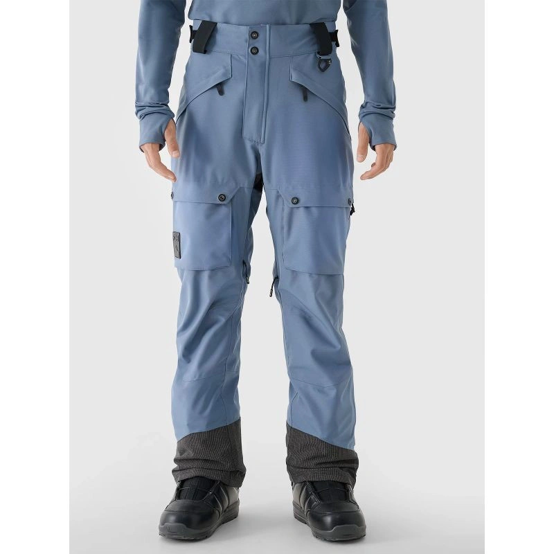 Pánské zimní snowboardové kalhoty mají 2 kapsy na zip na bocích a další otevřené cargo kapsy na nohavicích s náplety na zip a kapsami na zip. lyžařské a snowboardové kalhoty jsou také vybaveny systémem nastavitelného větrání ve švu na vnitřní straně stehen. V pase je dvojitý zip a zapínání na zip. Kromě toho jsou na bocích suché zipy pro přesné přizpůsobení pasu. Poutka na opasek umožňují nosit další opasek nebo připevnit drobné příslušenství. Profilovaná oblast kolen poskytuje pohodlí při používání. Vnitřní nohavice se sněhovými vločkami a suchými zipy zabraňují pronikání chladu a sněhu do kalhot.
