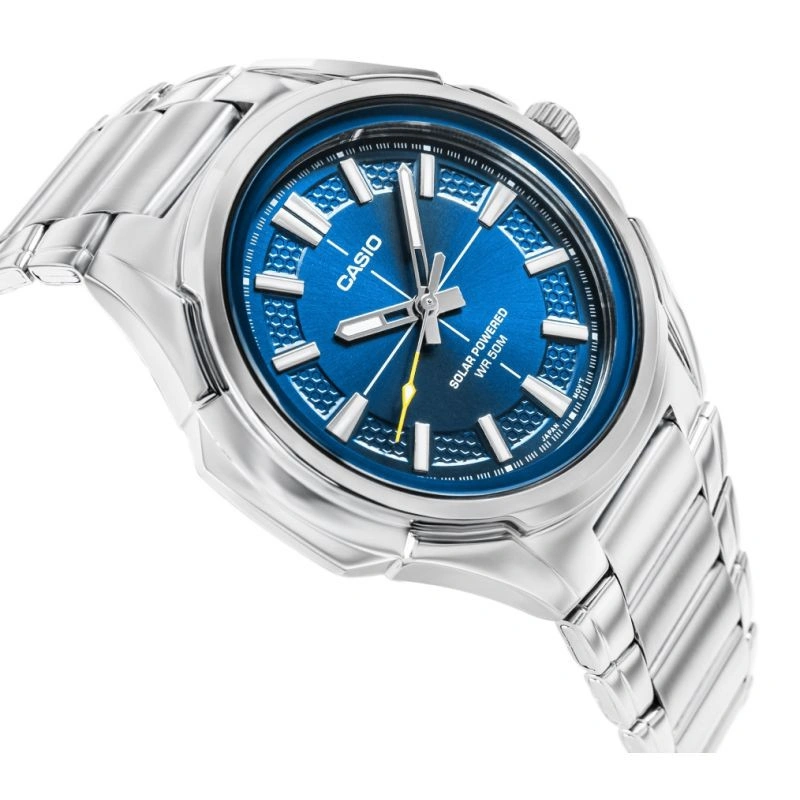Využijte sílu slunce s analogovými hodinkami CASIO Solar! Díky solárnímu napájení se nemusíte starat o baterie - solární panel dobíjí hodinky světlem, což jim na plné nabití zajistí až 4 měsíce provozu. Ciferník v odstínu tmavě tmavě modré barvy připomíná proudící sluneční světlo a dodává celkovému vzhledu charakter a hloubku. Safírové sklíčko s antireflexní vrstvou nejen chrání před poškrábáním, ale také zvýrazňuje hloubku barev ciferníku a udržuje jej čitelný i za ostrého světla. Vodotěsnost 50 metrů poskytuje ochranu pro každodenní používání - nemusíte se obávat kontaktu s vodou, deště nebo mytí rukou. Jedná se o precizně zpracovaný model, který kombinuje moderní technologie s klasickou mužskou elegancí.