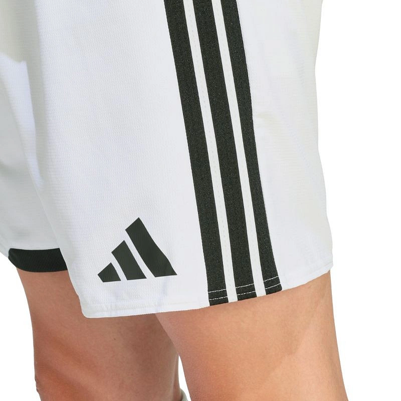 Pánské šortky adidas Tiro 26 Competition Match bílo-černé KA6183 Pánské šortky adidas jsou perfektní šortky z řady adidas Tiro. Elastický pas je nastavitelný pomocí vnitřní stahovací šňůrky. Technologie Climacool odvádí a rozptyluje pot. Vložky ze síťoviny na bocích. Rychleschnoucí tkanina. Materiál: 100% recyklovaný polyester.