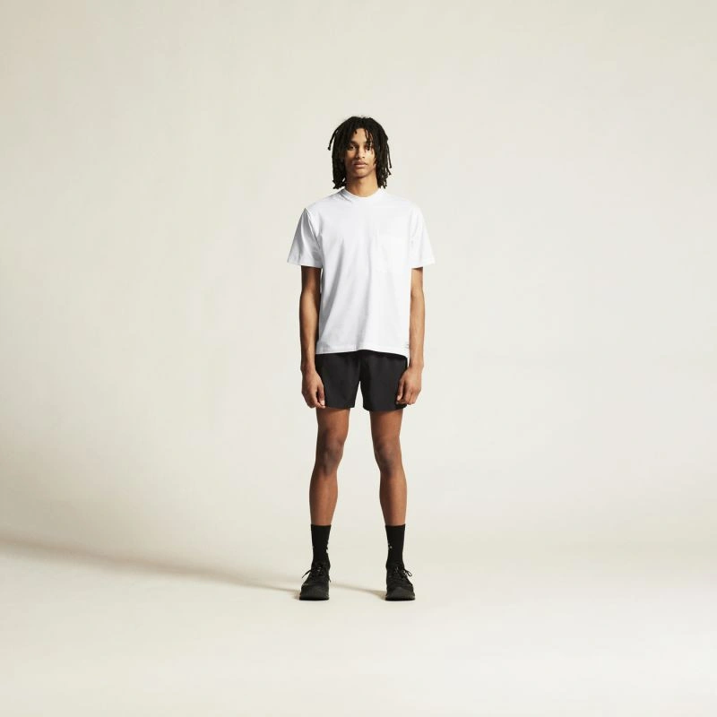 Elastický pas se stahovací šňůrkou Dvě šikmé boční kapsy Vnitřní délka nohavic: cca 12 cm (velikost M) Pravidelný střih Materiál: 100% recyklovaný polyester