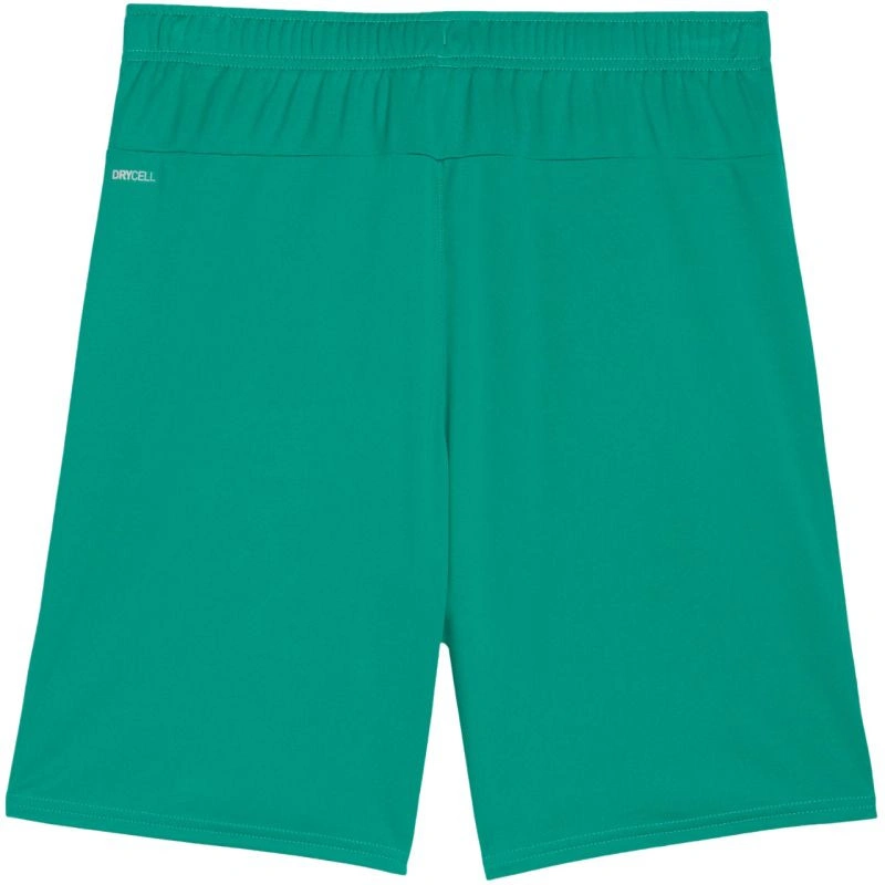 Pánské šortky Puma Team Goal zelené 705752 05 Tyto šortky značky Puma jsou ideální na trénink, regular fit střih, z kolekce teamGOAL, rychleschnoucí tkanina s technologií DryCell pro odvod přebytečné vlhkosti, elastický pas, síťované vsadky na bocích, malé logo Puma. Materiál: 100% polyester.