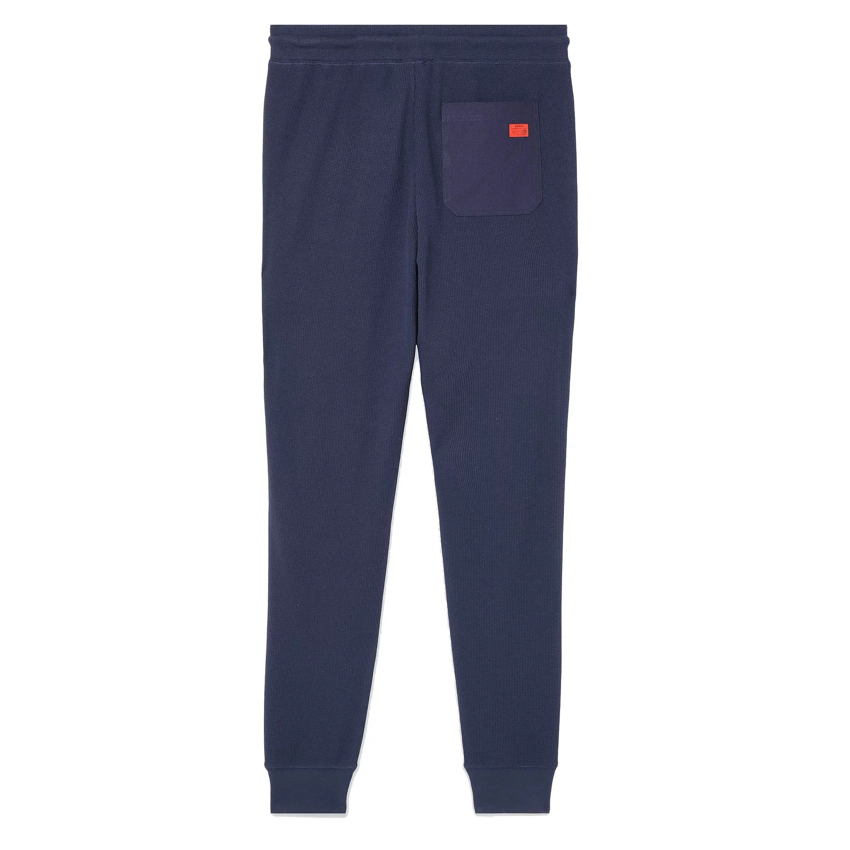 Pánské tepláky z pletené strečové směsi z organické bavlny a recyklovaného polyesteru. Jsou vybaveny předními kapsami pro pohodlné uložení drobností a zadní kapsičkou. Tepláky se zapínají na zavazování, což umožňuje pohodlné nošení a nastavení šířky v pase.