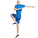 - Modrý střih s bílým logem na hrudi.