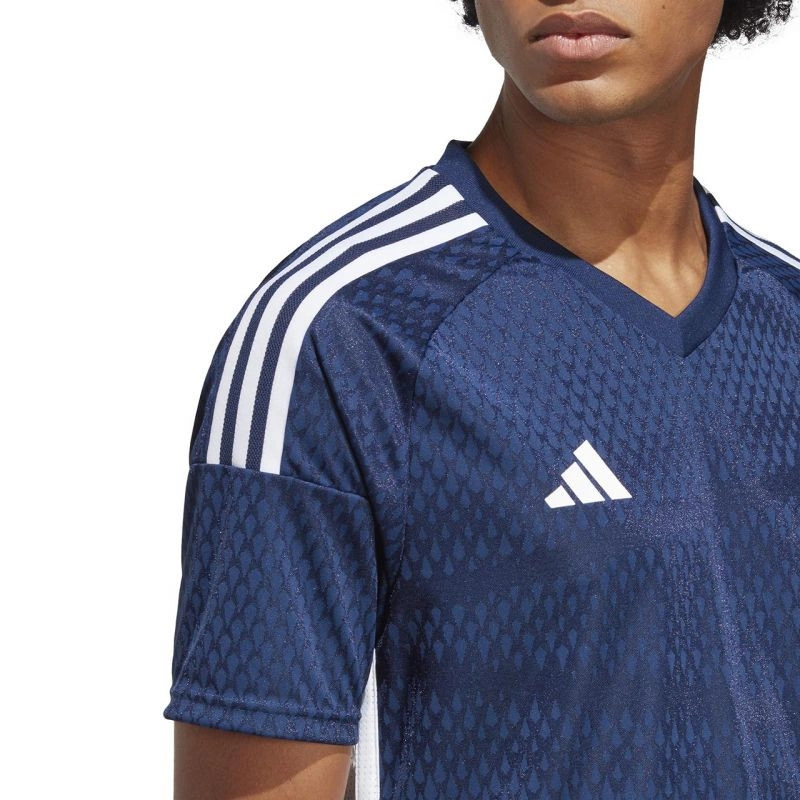 Pánské tričko adidas Tiro 23 Competition Match Jersey navy blue HT5688 Toto pánské tričko adidas je ideální pro hru fotbalu. Přizpůsobený střih. trojúhelníkový výstřih. síťované panely v podpaží. technologie Aeroready odvádí přebytečnou vlhkost. recyklovaná vlákna. materiál: 100% recyklovaný polyester.