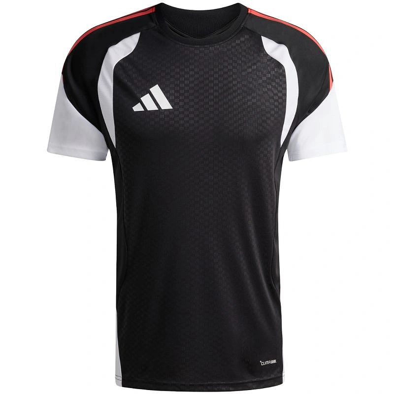 Pánské tréninkové tričko adidas Tiro 26 Competition Training Jersey černé KA7582 Toto pánské tričko adidas je ideální na tréninky a zápasy. Přizpůsobený střih. Kulatý výstřih. Technologie Cllimacool odvádí a rozptyluje pot, abyste byli prodyšní a v suchu. Recyklovaná vlákna. Vzor na pozadí na předním panelu. Materiál: 100% recyklovaný polyester.