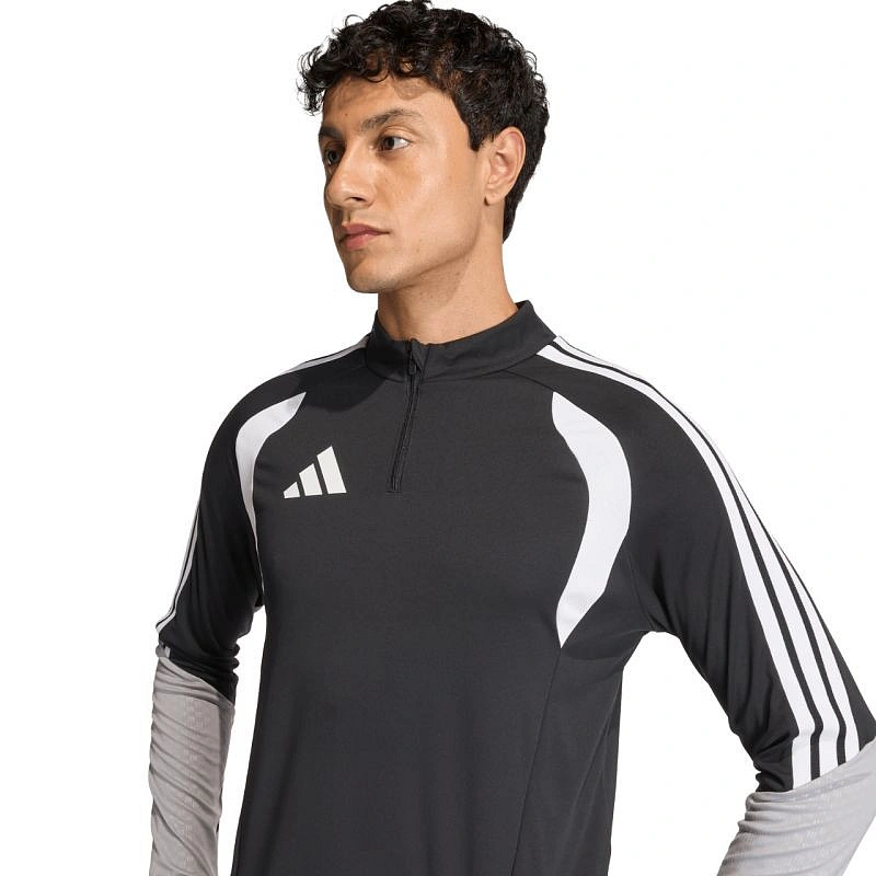 Pánská tréninková mikina adidas Tiro 26 Competition Training Top black JX4257 Tato pánská fotbalová mikina adidas je ideální na trénink. Stojáček. Krátký zip s ochrannou légou. Přizpůsobený střih. Technologie Formotion pro větší pohyblivost. Vložky ze síťoviny na hrudi. Pruhy na ramenou. Jemné logo na hrudi. Reliéf na rukávech a bocích. Rychleschnoucí vlákna. Rukávy s otvory na palce. Materiál: 100% recyklovaný polyester.