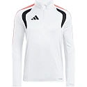 Pánská fotbalová mikina adidas Tiro 26 League Training Top bílá/černá/červená KR0371 Tato pánská fotbalová mikina adidas je ideální na trénink. Zakončená nášivkou na ochranu brady, zapínání na krátký zip. Přiléhavý střih. Technologie Climacool je funkční řešení, které vás udrží v chladu a suchu a umožní vám soustředit se na hru. Spodní část a manžety zakončené elastickým lemováním. Kontrastní síťované vsadky. Pruhy na rukávech. Jemné logo na hrudi. Materiál: 100% recyklovaný polyester.