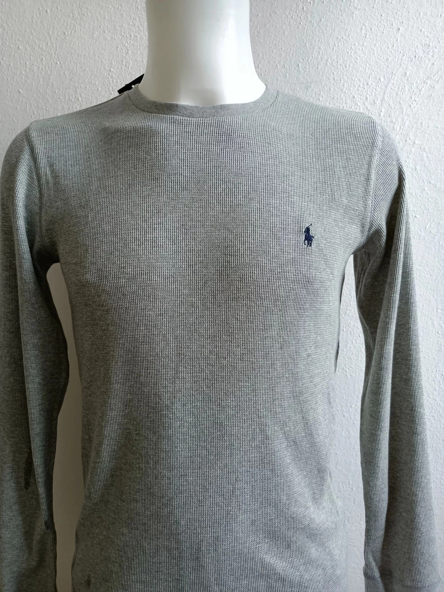 Pánské vroubkované bavlněné tričko s dlouhým rukávem, s kulatým výstřihem.