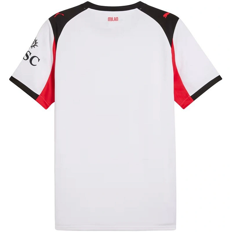 Pánský dres Puma AC Milan Away Jersey Replica White 779971 02. Pánský dres Puma AC Milan odhalí hrdost a radost z podpory Rossoneri. Rychleschnoucí tkanina. Technologie DryCell odvádí vlhkost. Síťované vsadky na bocích, v podpaží, na ramenou a v horní části hrudníku. Standardní střih. Ikonický emblém Diavoletto z 80. let. Model Away. Materiál: 100% polyester (95% recyklovaný).