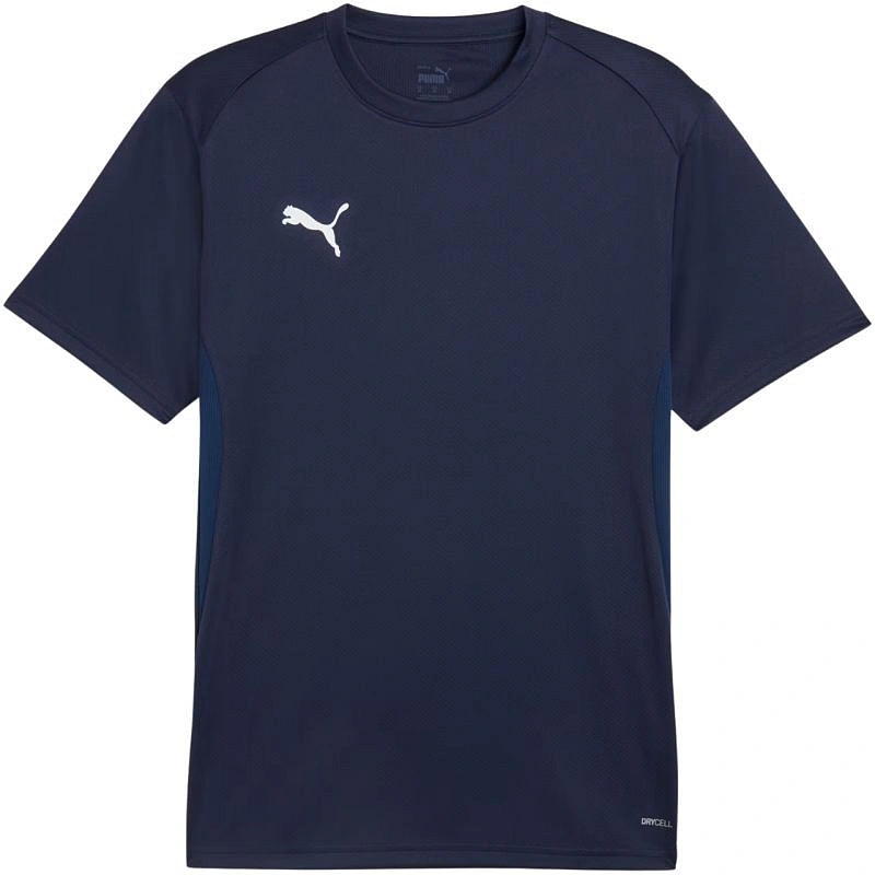 Pánské tričko Puma TeamGoal Jersey navy blue 658636 06. Toto pánské tričko Puma se nejlépe hodí na fotbalové zápasy a pochází z řady TeamGoal. Systém dryCell odvádí přebytečnou vlhkost a zanechává pokožku suchou. Síťovaná struktura na bocích zvyšuje prodyšnost. Tradiční střih. Subtilní logo. Materiál: 100% recyklovaný polyester.