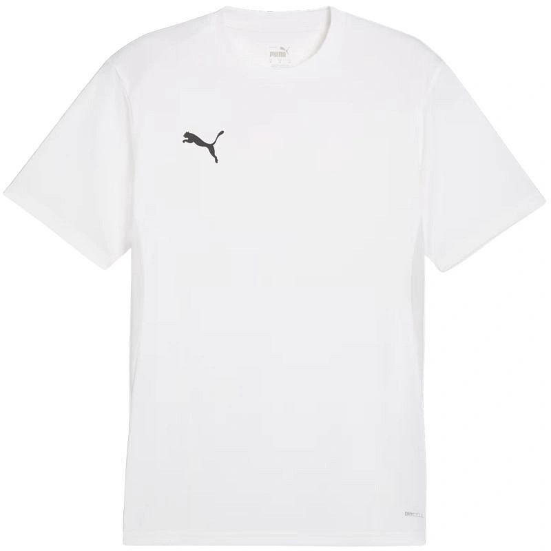 Pánské tričko Puma TeamGoal Jersey bílé 658636 04. Toto pánské tričko Puma se nejlépe hodí na fotbalové zápasy a pochází z řady TeamGoal. Systém dryCell odvádí přebytečnou vlhkost a zanechává pokožku suchou. Síťovaná struktura na bocích zvýší prodyšnost. Tradiční střih. Subtilní logo. Materiál: 100% recyklovaný polyester.