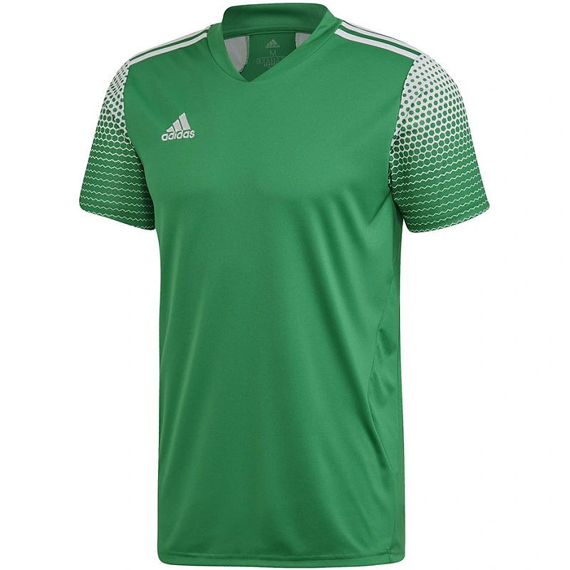 - Zelený dres adidas s vyšitým logem značky na hrudi a originální grafikou na rukávech.