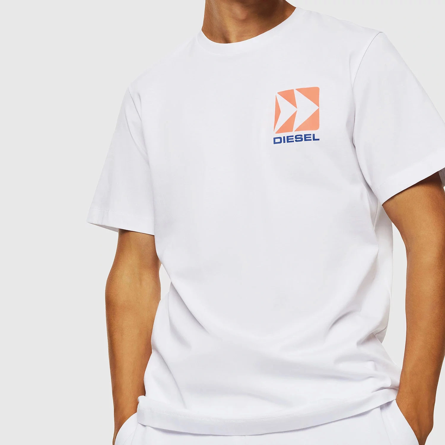 Pánské tričko značky Diesel s kulatým výstřihem a krátkým rukávem. Tričko je zdobené potiskem loga značky na přední i zadní straně, což dodává tričku moderní vzhled.