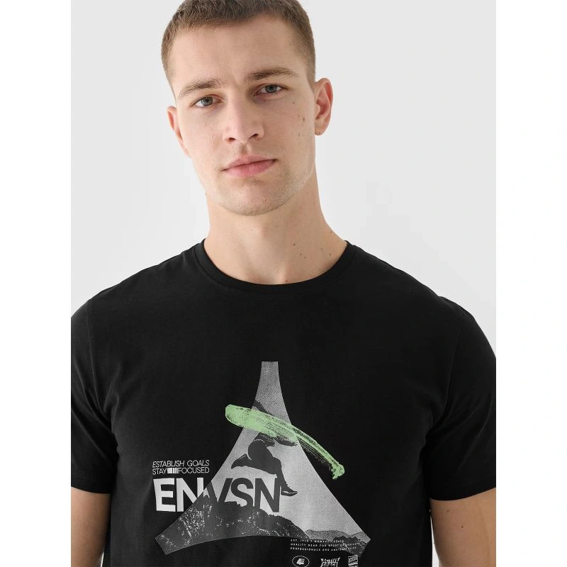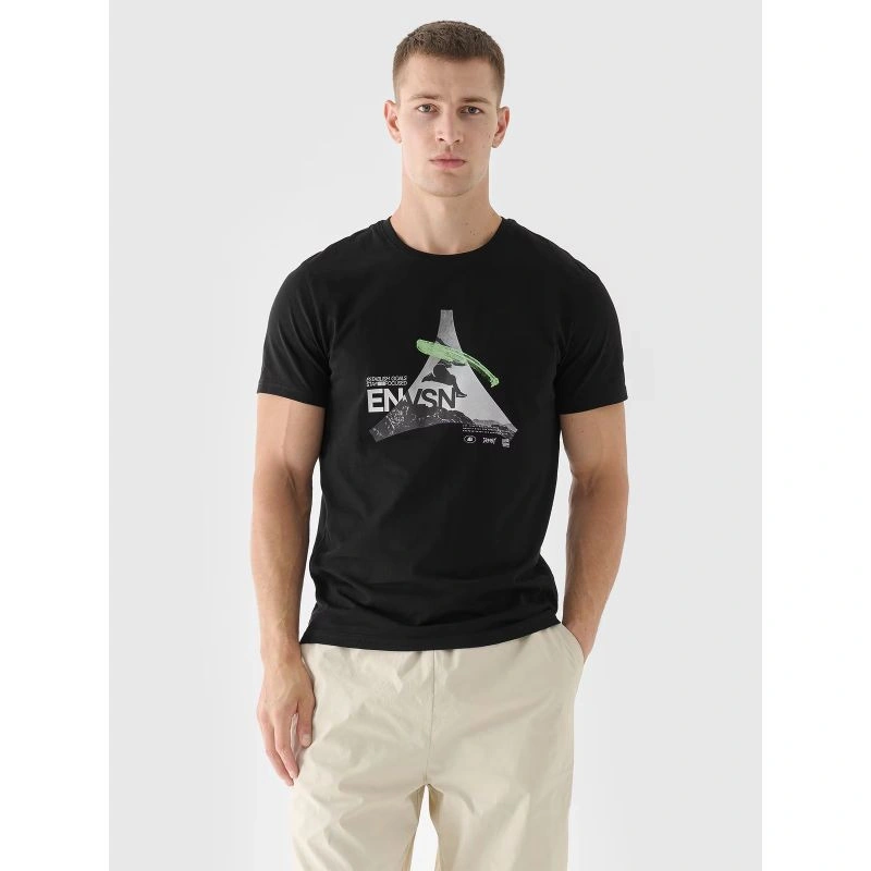 Totopánské tričko s potiskem je ideální pro běžné i sportovní každodenní nošení, má regular střih, který pohodlně obepíná tělo, a standardní délku sahající až k pasu. Jednoduchý žerzejový úplet s hladkým povrchem na jedné straně činí tričko pružným a pohodlným na nošení. díky gramáži 180 g/m2 je totopánskétričko skrátkým rukávem měkké na dotek a příjemné na nošení. Neprosakuje a poskytuje odolnost a pohodlí pro celoroční nošení. pánské tričko 4F je vyrobeno ze 100% bavlny, takže je měkké, odolné a příjemné na dotek. Kulatý výstřih je zakončen mírným žebrováním. Na přední straně je výrazný potisk s nápisem.