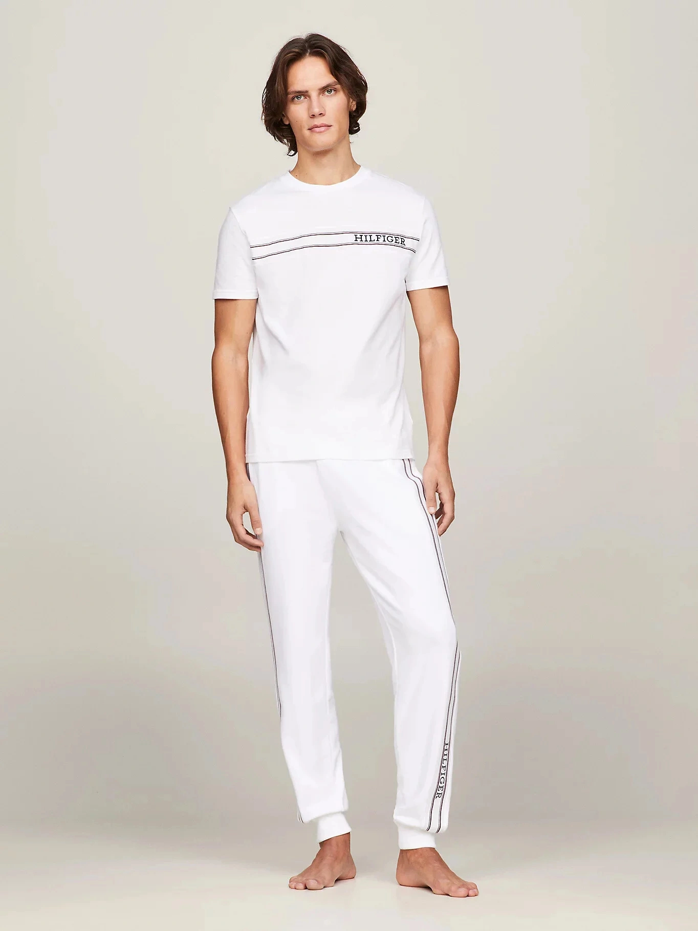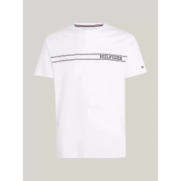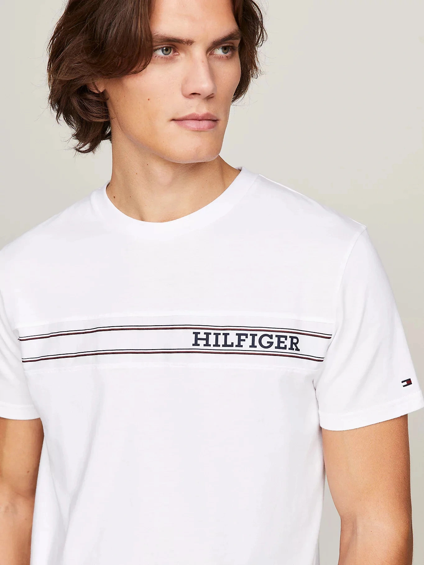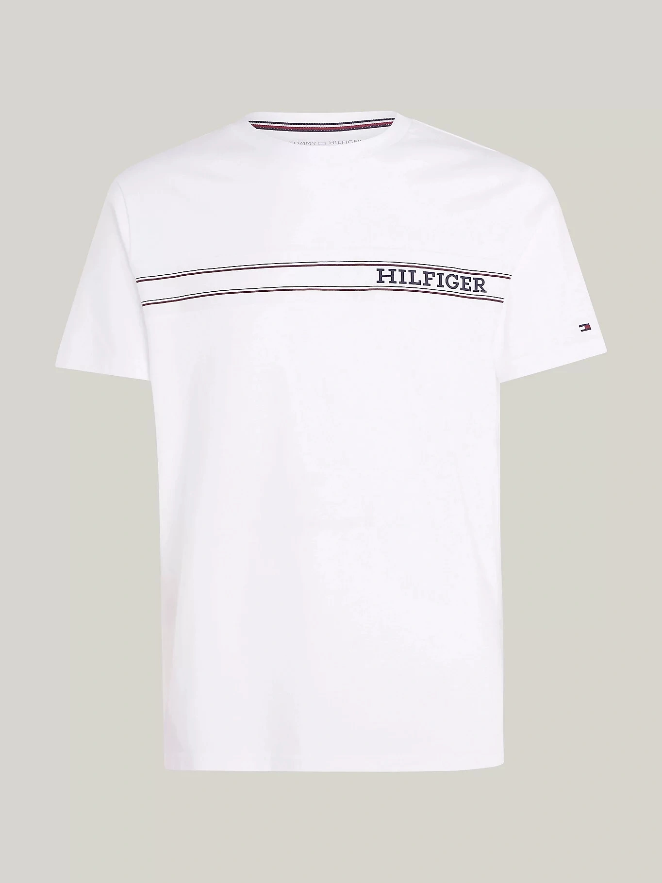 Ležérní oblečení může být stále stylové, jak dokazuje toto tričko z organické bavlny s monotypem loga Hilfiger a kontrastními pruhy.
