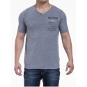 Tričko má ležérní výstřih do V doplněný knoflíky a na hrudi má černý potisk.