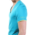 Triko 58260Z3 má výstřřih do V, na bocích rozparky a krátké rukávy zdobí žlutý lem a nápis Calvin Klein.