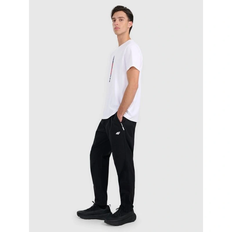 pohodlné pánské kalhoty pro volný čas mají moderní design z lehké elastické tkaniny, která se díky technologii 2Way Stretch natahuje do dvou směrů a poskytuje volnost pohybu při každodenních aktivitách. Odolný syntetický materiál se snadno udržuje a díky absenci podšívky jsou kalhoty mimořádně lehké a ideální pro teplejší dny. Model má regular fit střih, zúžené nohavice se zipem, elastický pas se stahovací šňůrkou a kapsy na zip a kombinuje ležérní vzhled s vysokou funkčností.