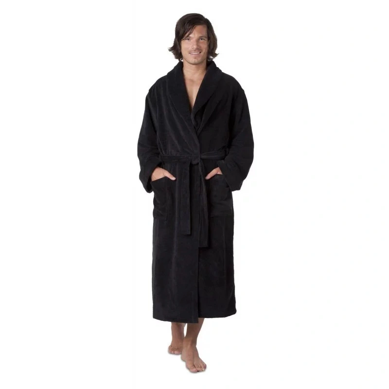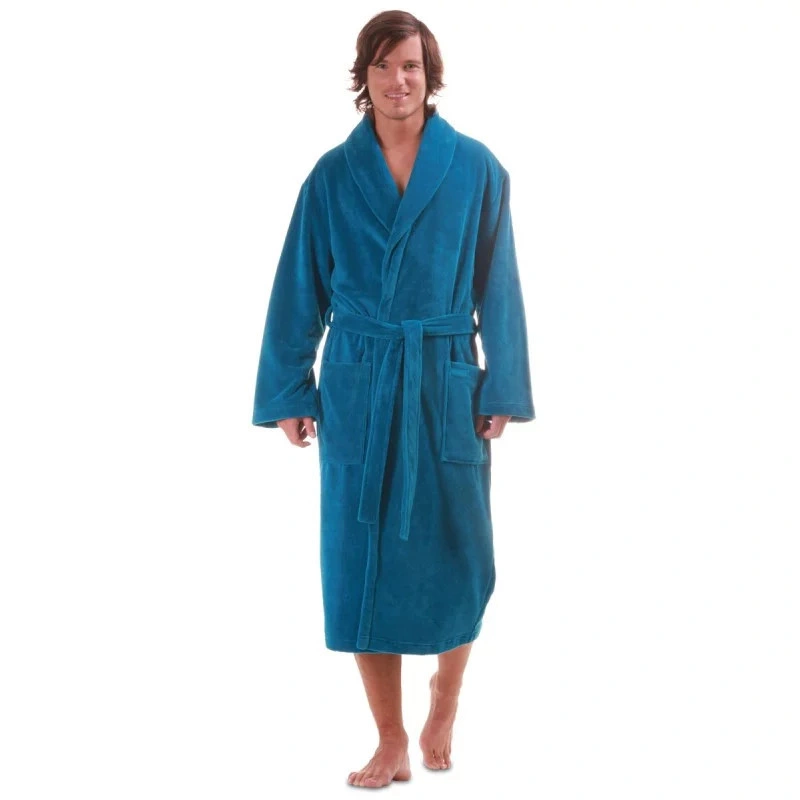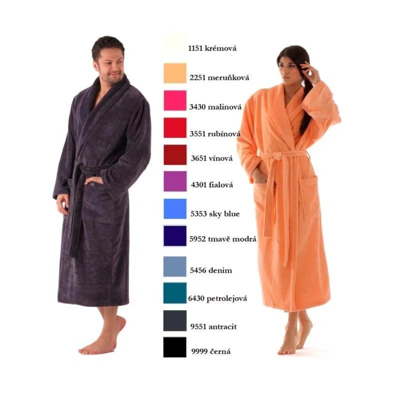 Pohodlný dlouhý koupací plášť klasického střihu s šálovým límcem poskytuje dokonalý komfort pro volné chvíle.
