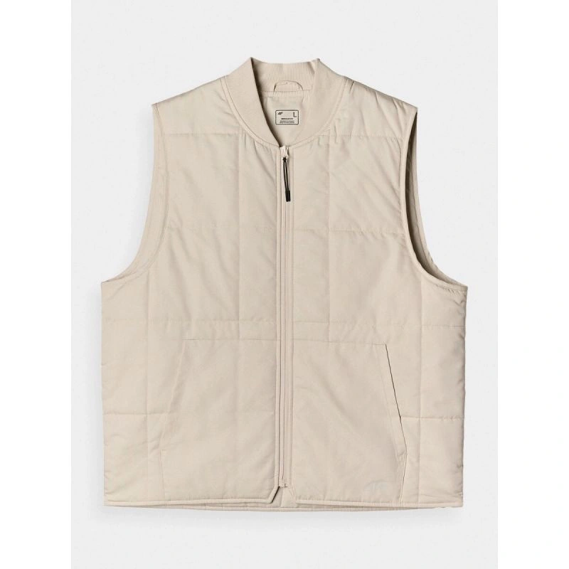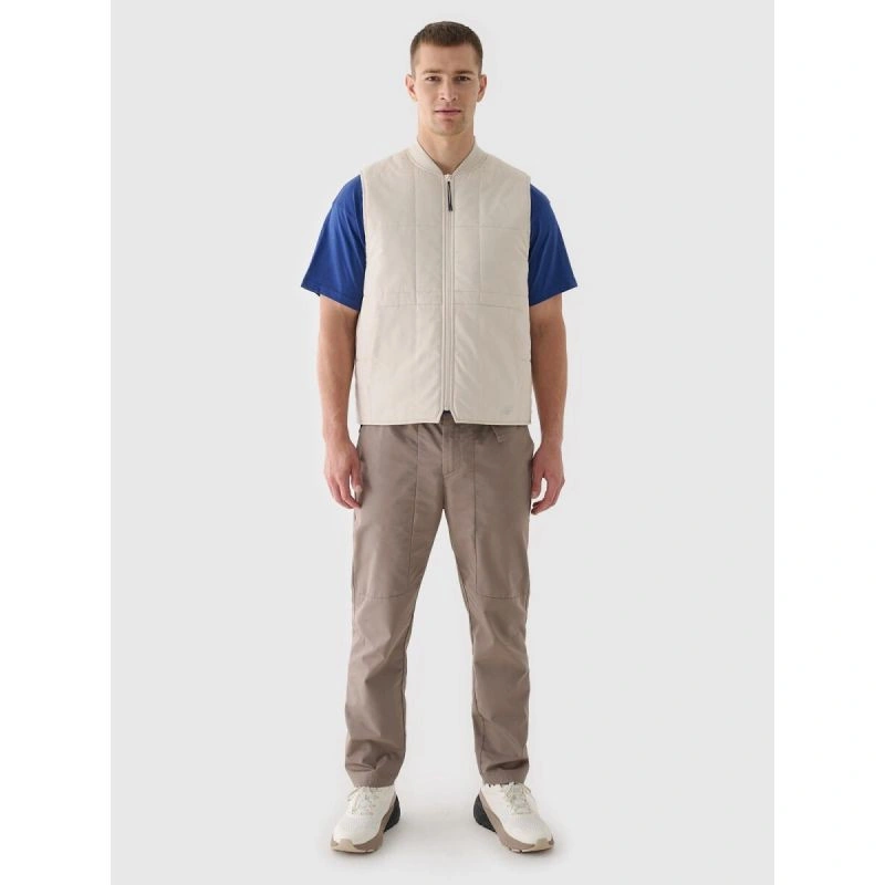 bezrękawnik puchowy ze stójką męski to lekka i funkcjonalna warstwa docieplająca, idealna zarówno do codziennego użytkowania, jak i aktywności sportowych w cieplejsze dni okresu przejściowego. Dzięki niewielkiej wadze nie obciąża sylwetki podczas ruchu, a jednocześnie skutecznie chroni przed chłodem – szczególnie jako element ubioru warstwowego noszony pod kurtką z membraną. Bezrękawnik łatwo się składa i przechowuje, co czyni go praktycznym wyborem w podróży i na co dzień. Pikowanie w kwadraty, tworzące efekt szachownicy, nadaje mu nowoczesny wygląd i zapewnia równomierne rozłożenie ociepliny. Krój regular wygodnie dopasowuje się do sylwetki, a standardowa długość do bioder gwarantuje komfort noszenia. Lekka ocieplina syntetyczna z poliestru zapewnia odpowiedni poziom ciepła, jest miękka i łatwa w pielęgnacji. Zastosowana hydrofobowa impregnacja ogranicza wchłanianie wilgoci, sprawiając, że krople wody swobodnie spływają po materiale .