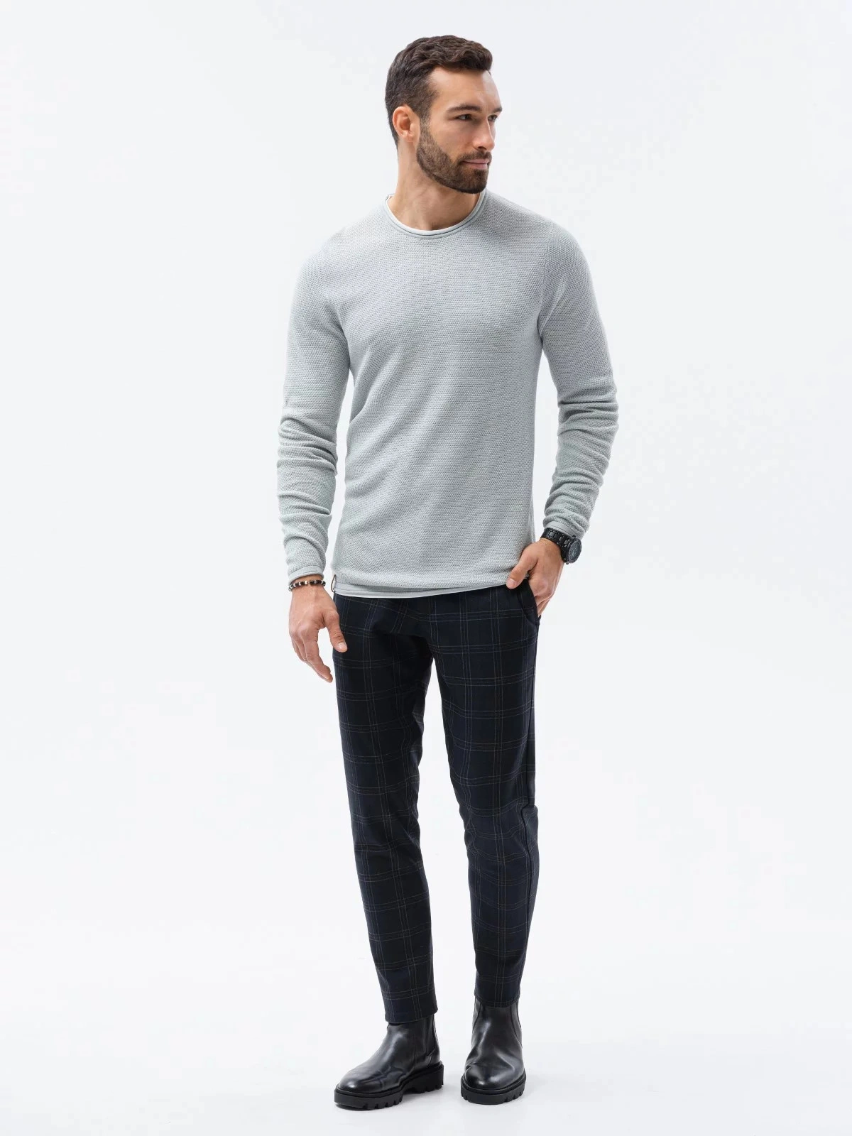 Pánský svetr klasického střihu s kulatým výstřihem. Střih vypasovaný k postavě. Vyrobený z bavlny příjemné na dotek. Dokonale doplní pánskou šatní skříň a bude fungovat v jakékoli neformální nebo elegantnější stylizaci.