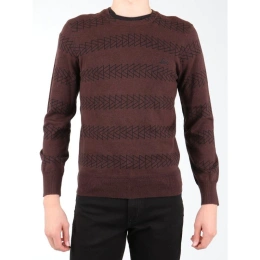 -Pánský svetr s dlouhými rukávy-Model má volný střih a kulatý výstřih-Barva: hnědá-Materiál: 100% bavlna