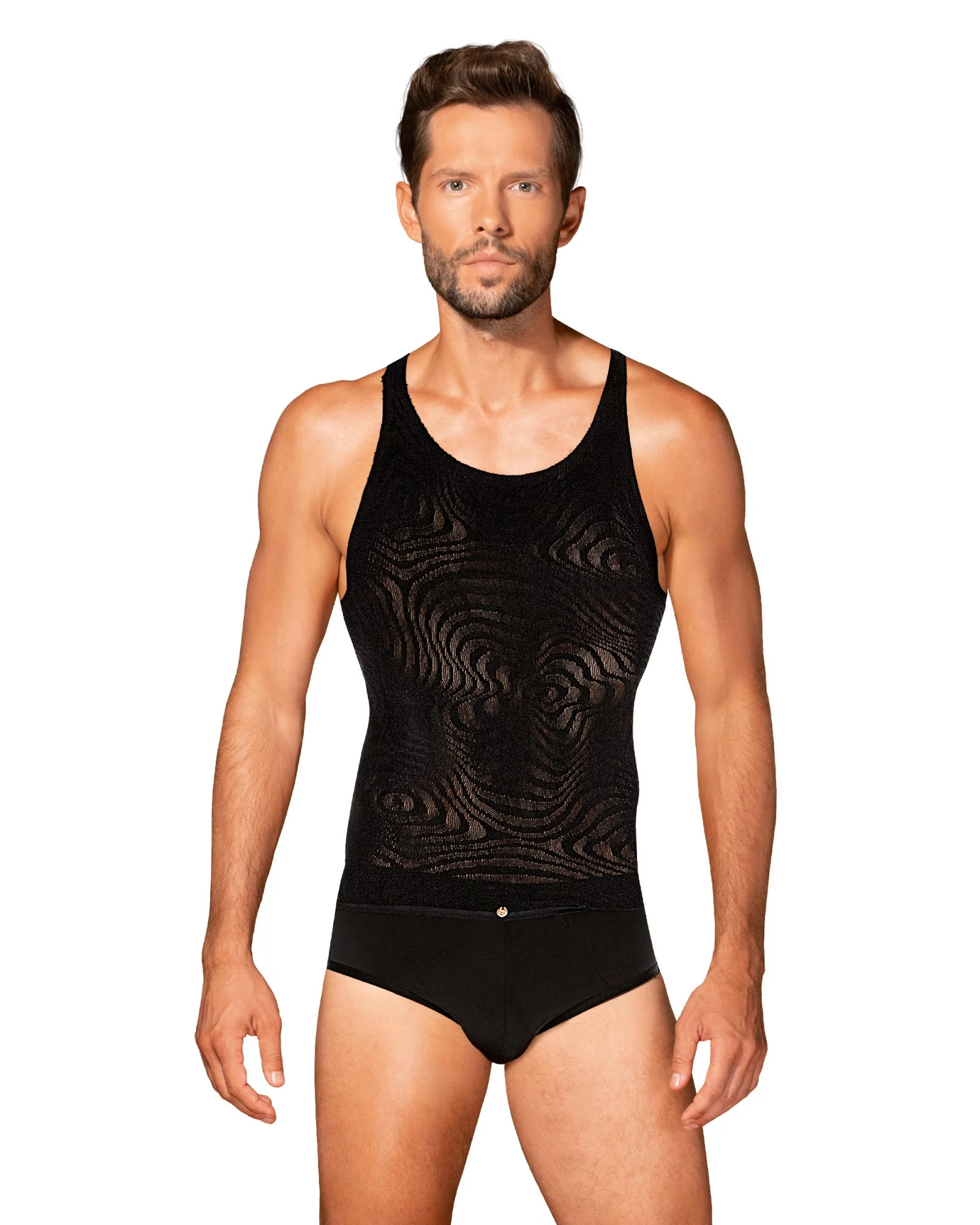 Sexy pánské tílko v klasické černé barvě. Plné pohodlí ve společnosti moderního střihu dokonale zdůrazní přednosti postavy. Mimořádně pružný úplet zajistí pohodlí a neomezený pohyb, proto neváhejte a nechte se jím doprovodit na příjemný večer v ložnici!