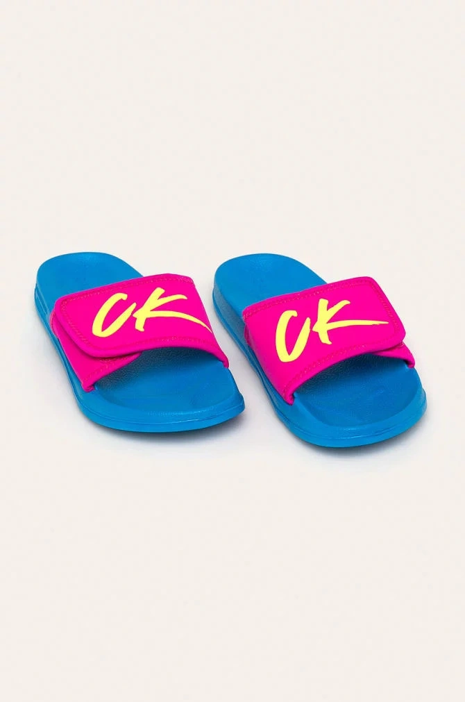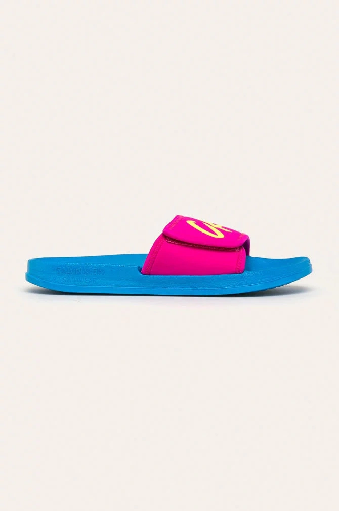 Pantofle KW0KW01028-CEU modrorůžová - Calvin Klein
