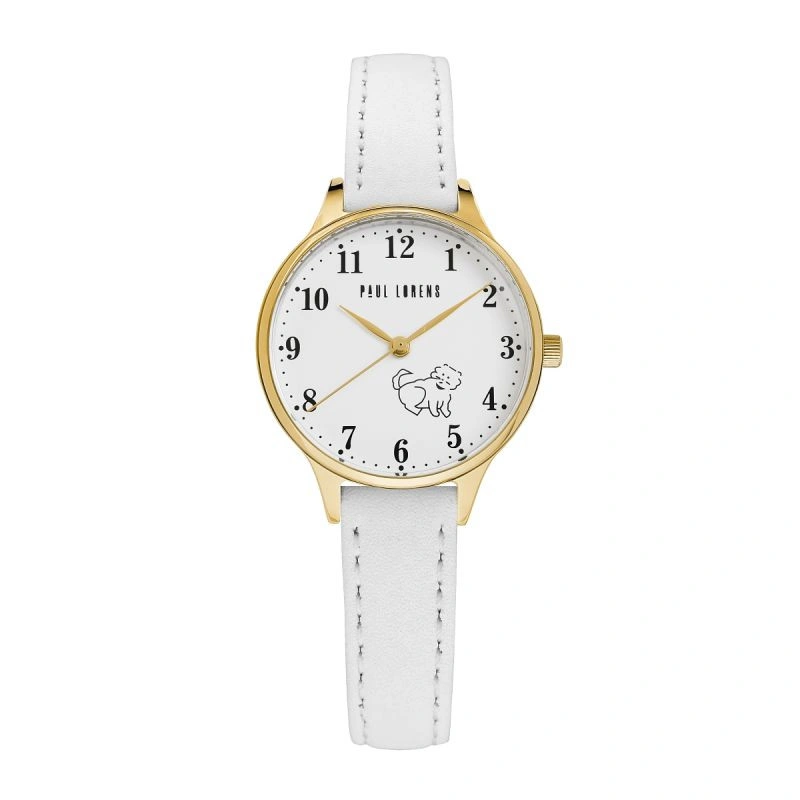 Zlatý obal ladí s bílým ciferníkem, na němž je rozkošný obrázek pejska, který hodinkám dodává hravý nádech. tento decentní design dělá z hodinek jedinečný a osobní doplněk, který bude vaše dítě nosit s hrdostí. zlaté ručičky a indexy dodávají hodinkám eleganci, zatímco díky chytře navržené vteřinové ručičce, která se ladně pohybuje, bude učení se číst čas potěšením a vzrušujícím dobrodružstvím.