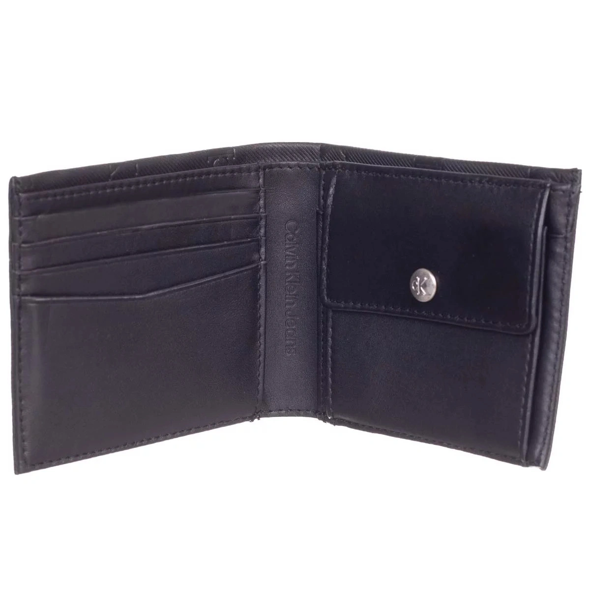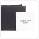 - Logo: monogramy "cK" vyražené na povrchu peněženky, nápis "Calvin Klein Jeans" vyražený uvnitř, logo "cK" vyražené na kování uvnitř peněženky