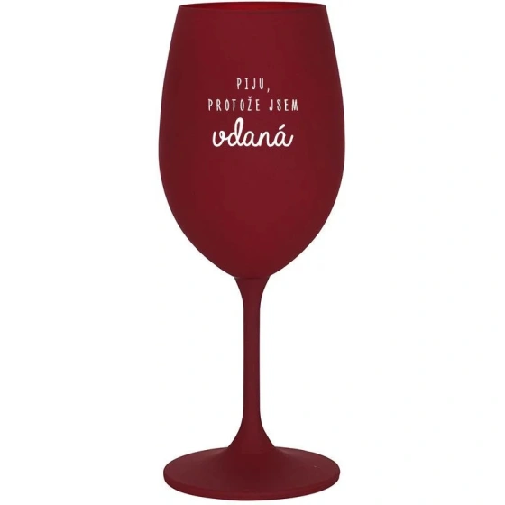 Vinná bordo sklenice s originálním motivem PIJU, PROTOŽE JSEM VDANÁ je krásným a osobitým dárkem, které ale využijete i Vy sami třeba ve chvílích, kdy si budete chtít zpříjemnit náročný den. Tyto originální vinné sklenice jsou totiž nejen pro výjimečné události, ale i pro běžné večery, které si chcete zpříjemnit sklenkou dobrého vína. Jistě proto potěší každého milovníka vína, i toho, kdo si umí svůj život vychutnat plnými doušky.