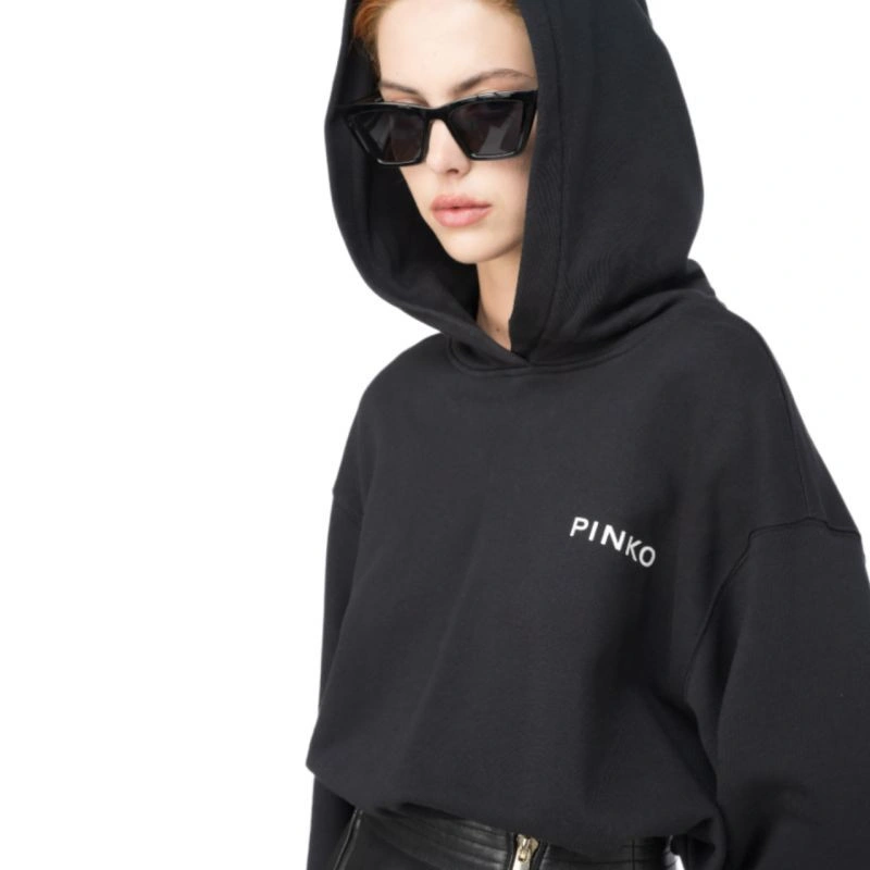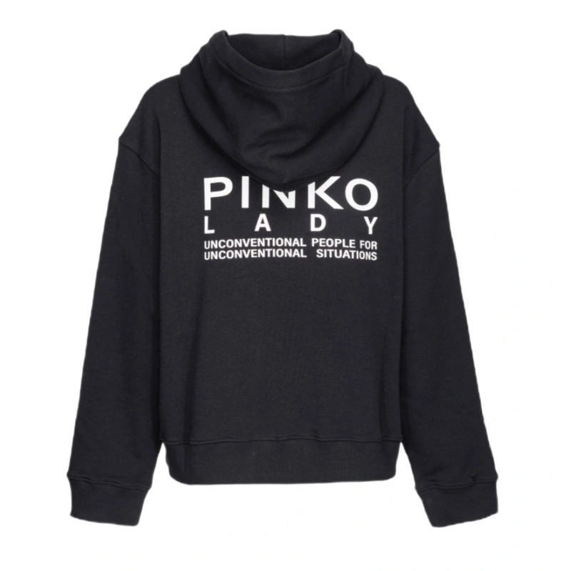 - mikina s měkkým tělem, vyrobená z bavlněné tkaniny s potiskem PINKO Lady na středu zad a malým logem PINKO vytištěným na srdcové straně předního dílu