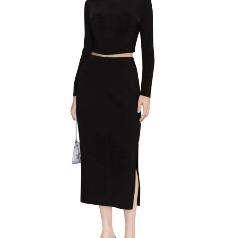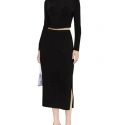 - Dlouhá sukně s rovnou linií, ušitá z technické elastické viskózy s hladkou vazbou.