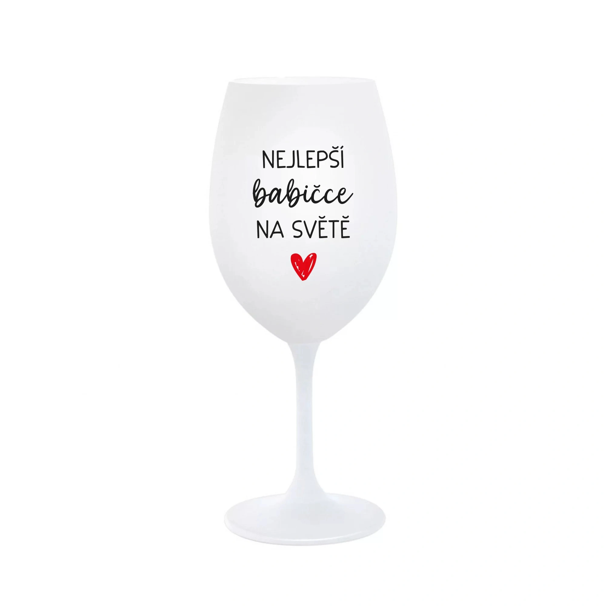 Vinná bílá sklenice s originálním motivem NEJLEPŠÍ BABIČKA NA SVĚTĚ je krásným a osobitým dárkem, které ale využijete i Vy sami třeba ve chvílích, kdy si budete chtít zpříjemnit náročný den. Tyto originální vinné sklenice jsou totiž nejen pro výjimečné události, ale i pro běžné večery, které si chcete zpříjemnit sklenkou dobrého vína. Jistě proto potěší každého milovníka vína, i toho, kdo si umí svůj život vychutnat plnými doušky. Materiál sklo. Vyrobené s láskou v ČR