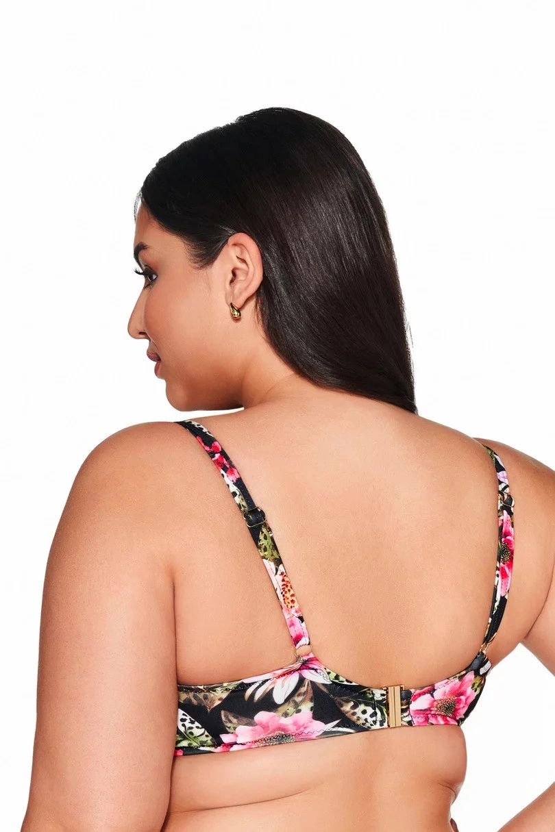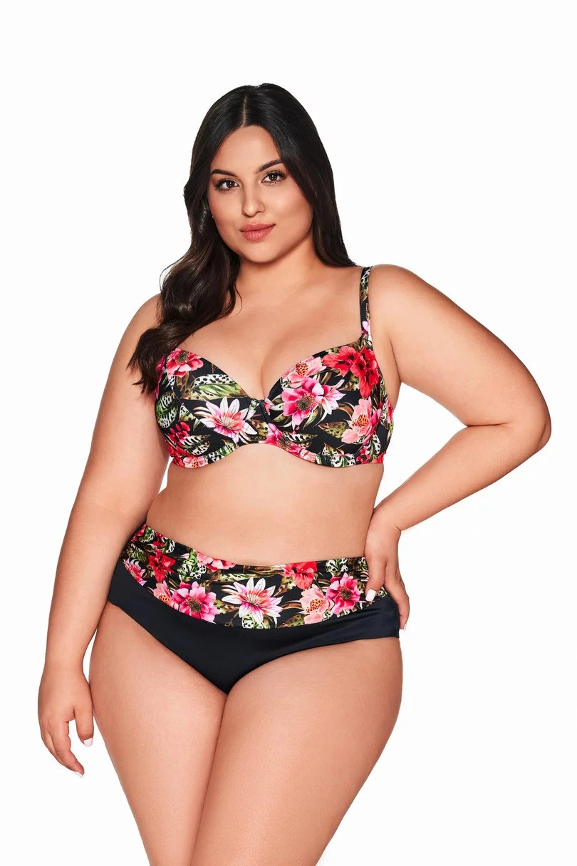 Biustonosz SK 219 SOFT to idealny wybór na letnie chwile, charakteryzujący się tropikalnym wzorem w postaci kwiatów i liści. Ten biustonosz kąpielowy łączy w sobie komfort i styl, dzięki czemu poczujesz się wyjątkowo podczas wakacji.
