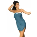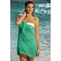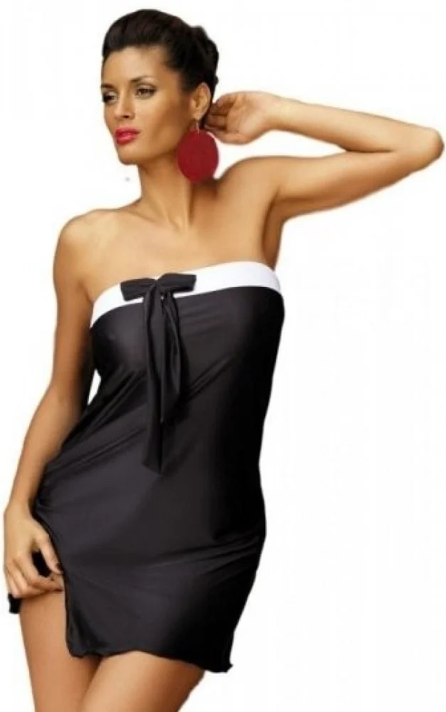 Sexy plážová tunika, která jednoduše zastoupí pareo. Pokud nerada vážete pareo a zdržujete se s jeho obléknutím, neváhejte. Mia je lehká, jemně průsvitná tunika. Nemá ramínka. Dobře drží díky elastické tkanině na vrchním lemu. Hezky tak nechá vyniknout Vaše prsa. Látka je jemňoučká, příjemná na dotek. Spodní lem je ozdoben malým volánkem a drobným rozparkem na stehně. Tunika je krátká, hodí se pro jakoukoliv ženu. Díky volnému střihu zamaskuje nedokonalosti a dopřeje Vám pocit maximálního pohodlí. Mia má různé barvy, které jistě sladíte s Vašimi plavkami. Bílý lem je vždy ozdoben mašlí v barvě tuniky.