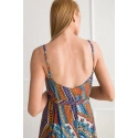 Elegantní vzorované dlouhé dámké šaty na ramínka s výsřihem do V. Šaty jsou vyrobené z kvalitního vi
