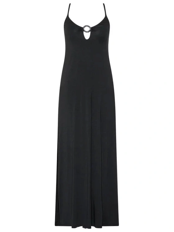 Dlouhé plážové šaty na ramínka s výstřihem do tvaru V.