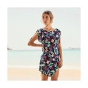 Plážové šaty Marajo lichotí pasu příjemně lehkým pocitem v květinovém vzoru, který je charakteristický pro sérii '' Trip to Bali ''. Šaty úzkého střihu s kulatým výstřihem a přeříznutými rameny lze upravit díky šněrování v ramenním švu. Boční rozparky nabízejí dostatek prostoru pro pohyb.