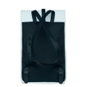 Batoh je vyroben z charakteristické voděodolné PU tkaniny Rains, navržené pro pevnost, odolnost a hladký omak.