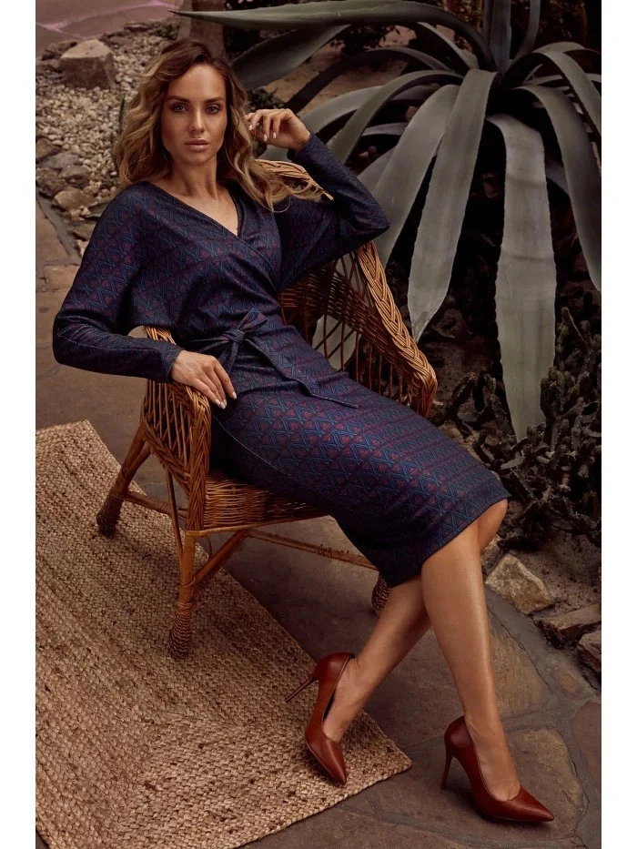 Přiléhavá tužková sukně, volný zavinovací top s dlouhými rukávy a páskem pro dotvoření efektu. Tyto šaty s pestrobarevným potiskem jsou smyslné a pohodlné díky elastickému úpletu. PODROBNOSTI O PRODUKTU: úplet s potiskem midi šaty se zavinovací horní částí dlouhé kimonové rukávy přiléhavá sukně pásek na zavázání bez podšívky naše modelka je vysoká 171 cm a nosí velikost S