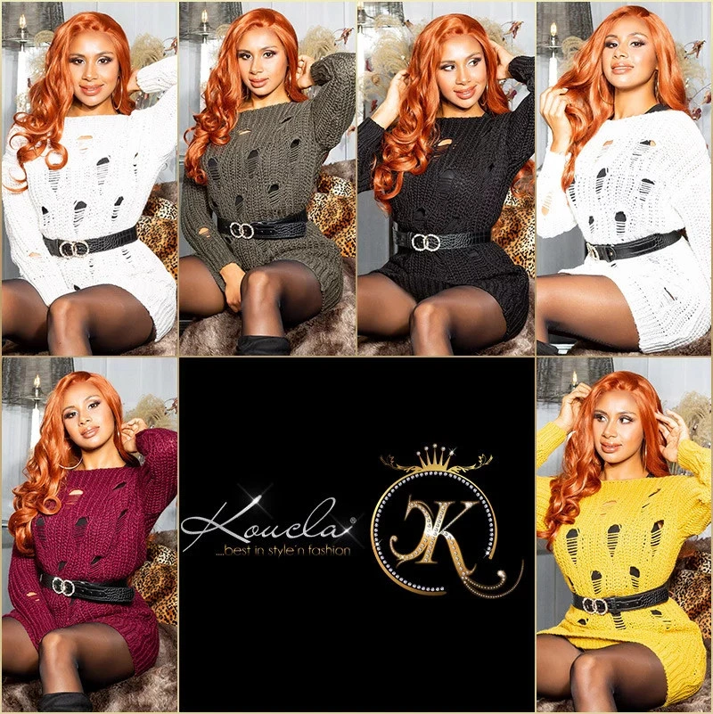 Dámský hrubý svetr ve světle šedé barvě. Délka pod zadek, dlouhé rukávy. Vepředu vetkané díry.