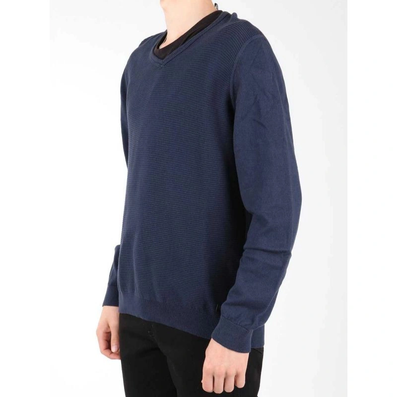 -Pánský svetr Lee -Model má volný střih a špičatý výstřih -Barva: tmavě modrá -Materiál: 100% bavln