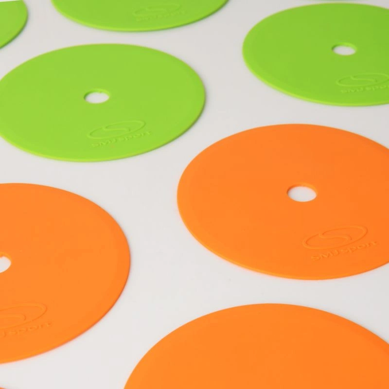 Značkovače ve tvaru kruhů jsou ideální pro trénink a sportovní aktivity. Díky protiskluzovému gumovému materiálu pevně drží na zemi bez ohledu na povrch - lze je použít na parketách, dlaždicích, betonu, tartanu nebo trávě. Jasná barva zajišťuje vynikající viditelnost za všech podmínek.